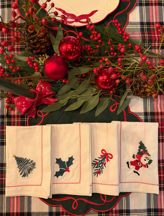 Witte kerstservetten (set van 2) met geborduurde hulstblaadjes