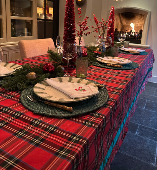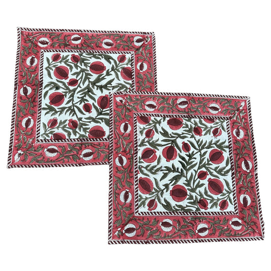 Katoenen servetten (2 stuks) blockprint met frambooskleurig streepje