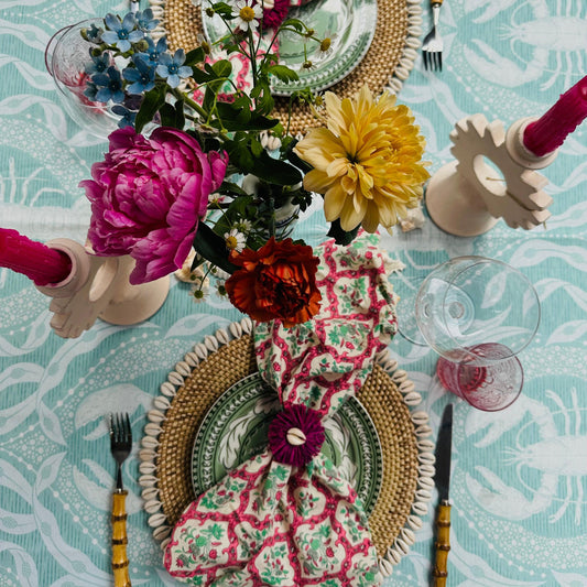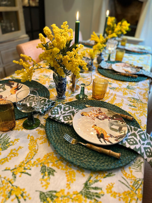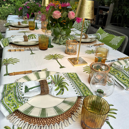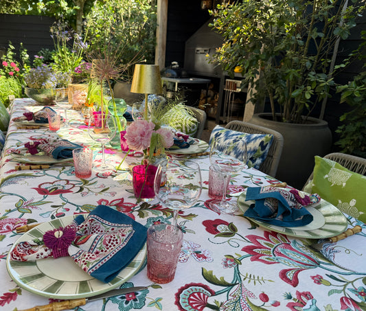 In mijn webshop vind je een breed aanbod van exclusieve tafelaccessoires van onder andere placemats, servetten, kaarsen en tafelkleden in mooie prints en weeftechnieken, zoals handgemaakte Indiase block prints, Mallorcaanse Ikat designs en vele andere motieven.