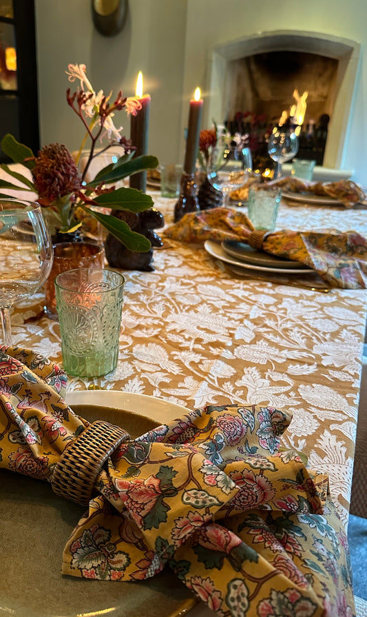 Tafelkleed Indiase blockprint okergeel
