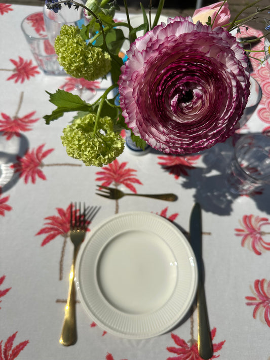 Tafelkleed Indiase blockprint frambooskleurige granaatappel