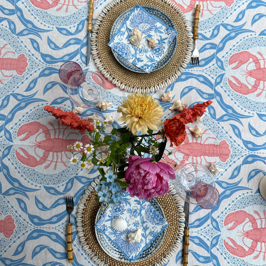 Blauw met roze kreeften tafelkleed