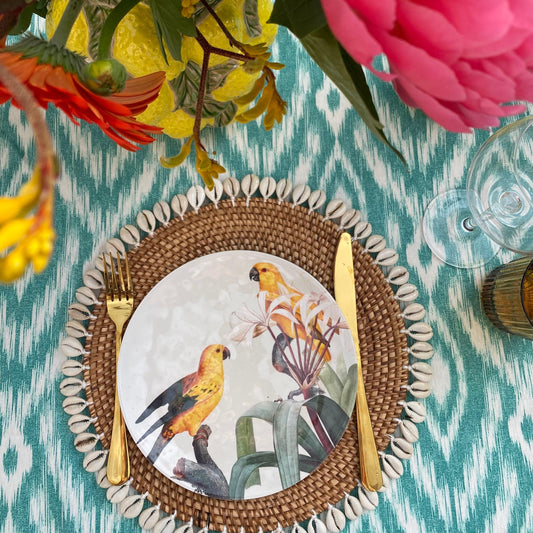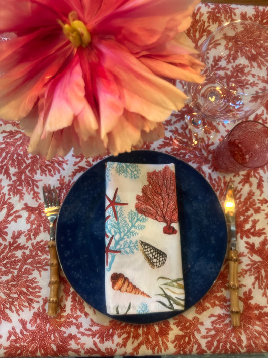 Waterafstotend tafelkleed zeekraal/schelpen aqua-terracotta