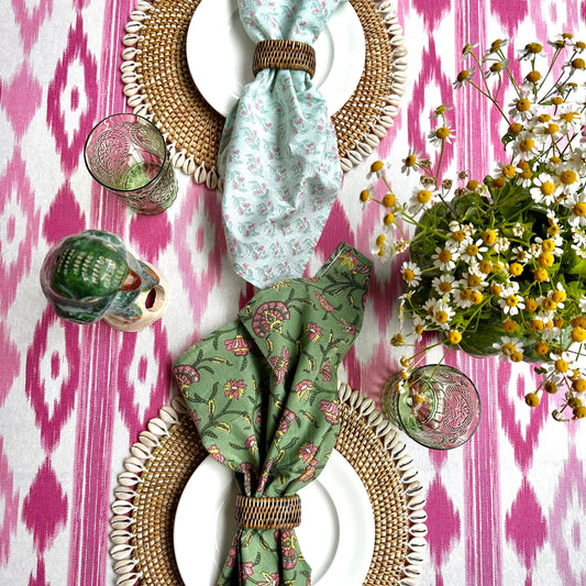 Waterafstotend tafelkleed ikat blauw met groene streep
