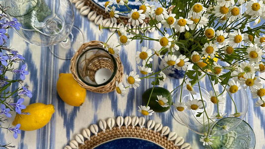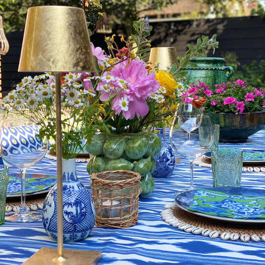 Waterafstotend tafelkleed kobalt blauwe ikat