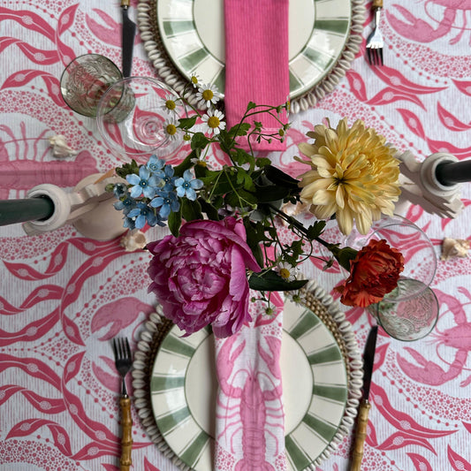 Waterafstotend tafelkleed kreeftenprint blauw met roze