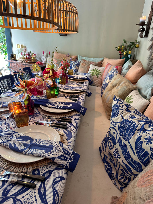Mallorcan ikat print napkins cobalt blue