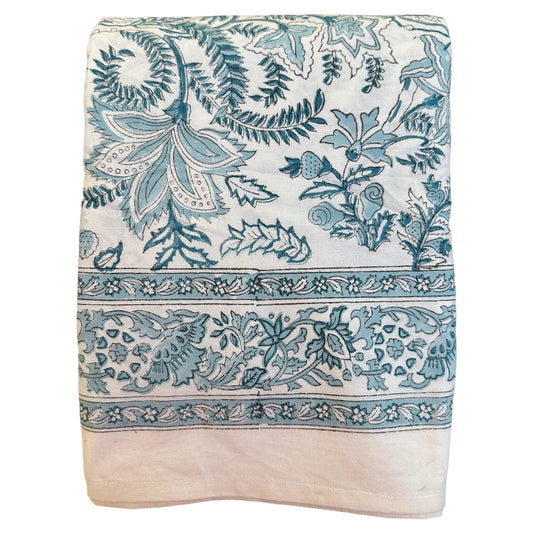 Cotton napkins block print white with light blue flowers