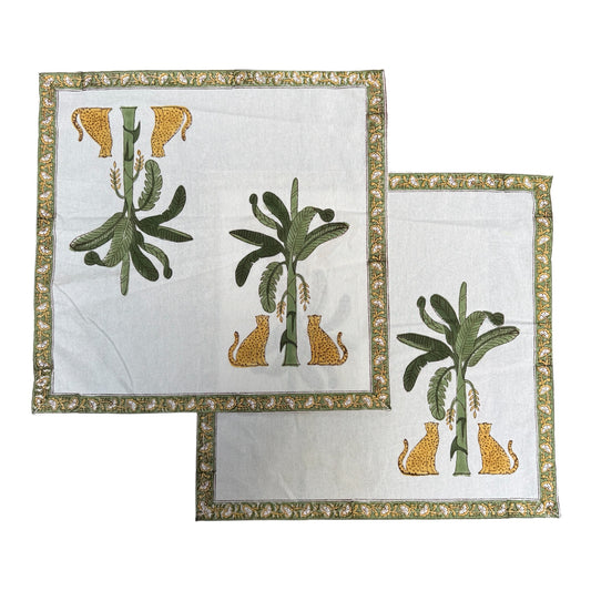 Tafelkleed Indiase blockprint geel met oranje bloem en groene takjes