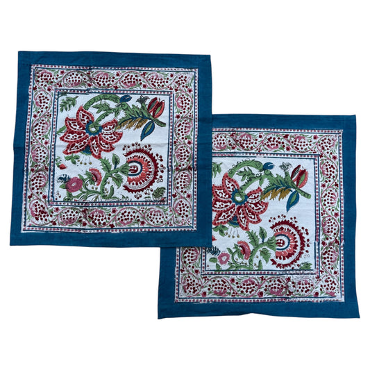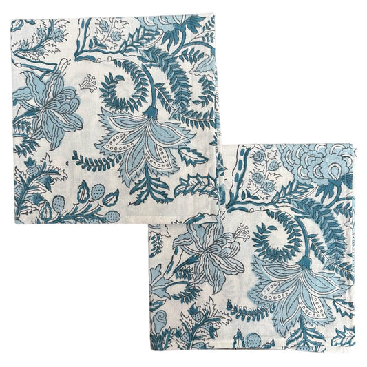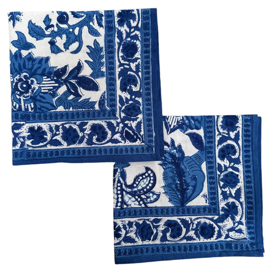 Tafelkleed Indiase blockprint kobalt blauw met blauw witte bloemen