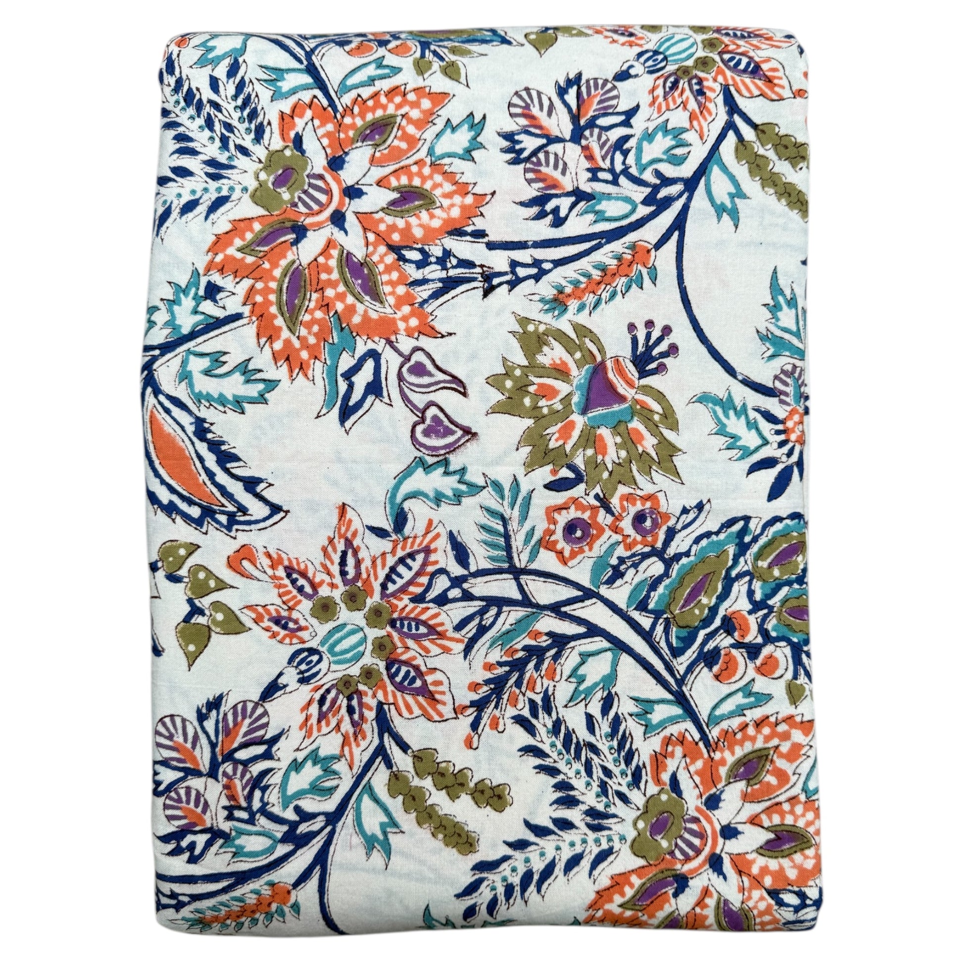 Tafelkleed Indiase blockprint oranje en blauwe bloemen